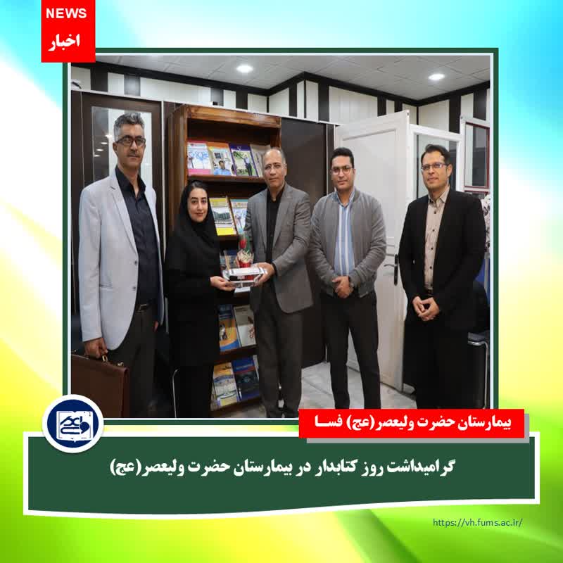 به گزارش واحد روابط عمومی بیمارستان حضرت ولیعصر(عج) فسا؛ به مناسبت روز کتابدار و هفته کتاب، جمعی از مدیران و کارکنان بیمارستان با حضور در کتابخانه، ضمن دیدار با کتابدار بیمارستان، این روز را به ایشان تبریک گفتند.